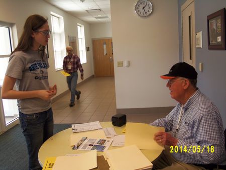 Red, N3TG, finishing up the paperwork with a new ham who just passed the tech exam. |
