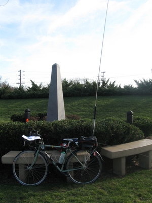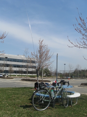 Note that while the operating shots show my antenna whip at full extension, it is unsafe to ride that way and I retract the whip before moving. The station can tune and radiate with the whip retracted, just not very well! The counterpoise wires visible in one shot at the Dulles QTH didn't seem to help and I packed them away soon thereafter. If you seek nominations for best signal, KC4VT's operation sounded outstanding. I had a great time and look forward to entering again next year, maybe activating a few more cities and counties accessible from Herndon by bike if we get weather as nice as we did this year! 73 Steve KS1G/Bike Mobile. |