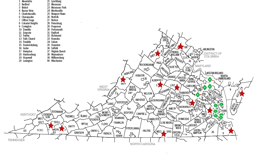 Virginia Counties and Independent Cities: 95 counties