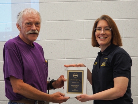 The Virginia Mobile Single Operator plaque, sponsored by the Middle Peninsula Amateur Radio Club in Honor of Joe Imburgia, KI4LXT (SK), is presented to Matt Shelburne, W4GO/M and accepted by Mike Trowbridge, KA4RRU. |