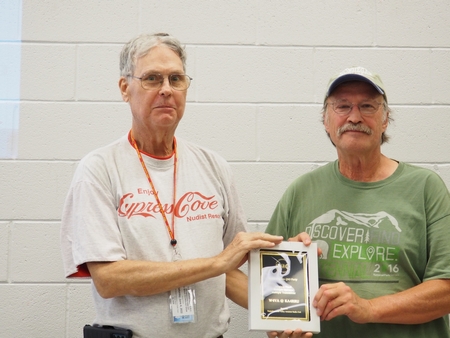 The Single Band plaque, sponsored by the Vienna Wireless Society, is presented to Gene Sullivan, WA4NUF, by Lori, KC0EWN. |