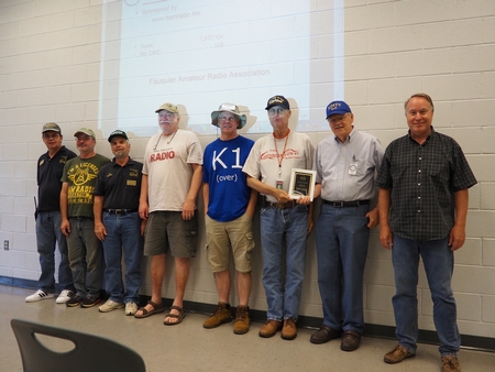 The Virginia Club - Virginia QSOs Only plaque, sponsored by www.hamradio.me is presented to the Fauquier Amateur Radio Association. |