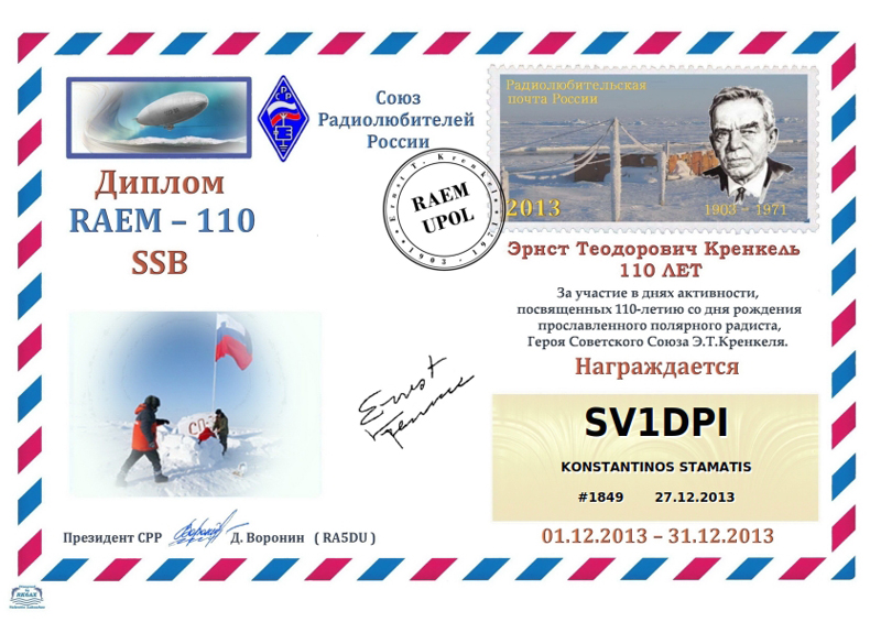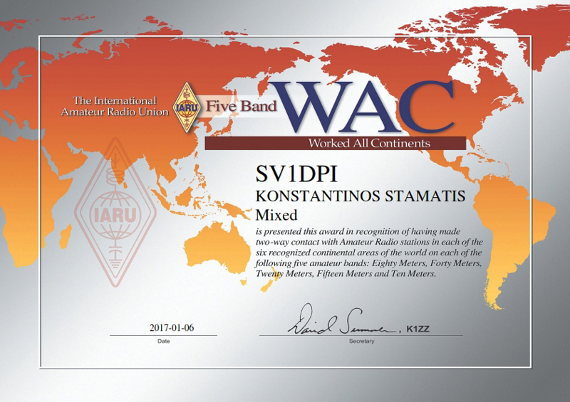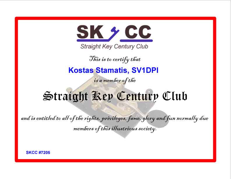 Proud member of Radio Amateur Association of West Greece which is my club. I am past president and I am always in my club activities. If you hear SZ1A in a contest, please call and give us some points. |
