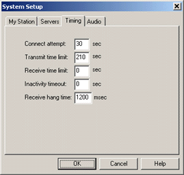Connect attempt : Bağlanma için geçerli süre belirlenir. Belirlenen süre içerisinde bağlantı kurulamaz ise bağlantı kopar.Transmit time limit : Bilgisayardan yapacağınız görüşmede, sizin gönderme zamanınızı limtiler. Bu ayar 0 yapılırsa sürekli görüşme sağlanır.Receive Time limit : EchoLink in dinleme süresi limitlenir. Bu ayar özellikle Link yada Röle kullanımlarında önemlidir. RF kısmının zara görmemesi için süre konulması gerekir. |