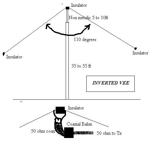 Inverted Vee Anten | Dipol antendir, yalnız besleme noktası ile her iki kol arasında yaklaşık 120 derece açı yapmalıdır. Her yön ile haberleşebilir. RESİM Anten |