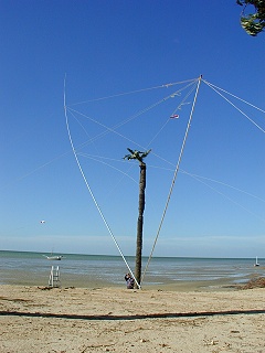![]() Pulling up one element of the 4-square for 80m. Our Spiderbeam is working excellent! The vertical is 21m high! |