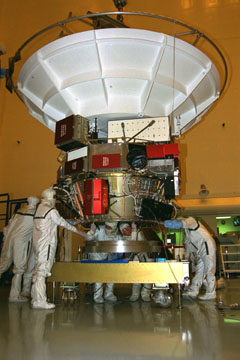 protectrice de la fusée Titan alors que la sonde Cassini est fixée