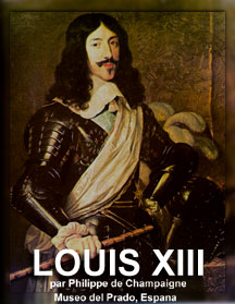 (Fontainebleau, 1601 - SaintGermain, 1643) . Roi de France et de Navarre (1610-1643). Fils aîné d'Henri IV et de Marie de Médicis. Il n'a que neuf ans lorsque son père est assassiné, le 14 mai 1610. Le sacre lui est conféré à Reims le 17 octobre suivant. Jusqu'en 1617, c'est sa mère, régente, qui gouverne en son nom. Adolescent, il supporte impatiemment la domination et les insolences de Concini. Un beau jour, il se révolte. Aidé de son premier confident, Luynes, il décide de se débarrasser du parvenu pour, enfin, régner. En réalité, le meurtre de Concini a pour premier effet de remplacer un favori par un autre : Luynes, de plus de vingt ans l'aîné du roi, va maintenant exercer le gouvernement avec le titre de connétable. Les grands se soulèvent sous prétexte de soutenir Marie de Médicis exilée à Blois. Le rétablissement du catholicisme en Béarn provoque une nouvelle guerre de Religion qui s'achève, après le siège infructueux de Montauban en 1621, par la paix de Montpellier en 1622. Luynes est mort pendant cette campagne. 1624 est une date importante : la reine mère impose au Conseil une de ses créatures, Richelieu. Ainsi commence une collaboration qui ne durera pas moins de dix-huit ans. L'histoire politique du règne de Louis XIII se confond désormais avec celle du ministère de Richelieu. Leur entente fut un contrat de confiance mutuelle pour un but commun imposé par la raison : la grandeur de la France. Sévère de visage et de mise (ce qui ne va pas sans majesté) ainsi que de moeurs (ses « inclinations » pour Mesdemoiselles de Hautefort et de La Fayette resteront platoniques, quoique passionnées), il offre à première vue un saisissant contraste avec son père. Et voici qu'en 1638 naît enfin l'héritier que l'on commençait à