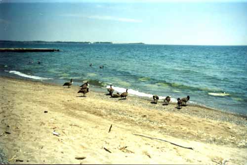 Озеро Онтарио. Дикие утки на берегу, но трогать ты их не моги - строжайше запрещено.