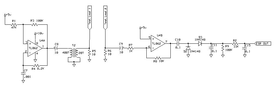 | "The only part that could pose problems to inexperienced builders is the transformer. I made mine using an Amidon ferrite core, type EA-77-188, which is a tiny double-E core having a cross section of 22mm2, and external dimensions of about 19x16x5mm total. I used the nylon bobbin that Amidon delivers with it, wound a primary winding consisting of 400 turns of AWG #36 wire, and as secondary I wound 20 turns of AWG #26 wire. If you have a larger or smaller core, you can adjust the turn numbers in inverse proportion to the cross section area. The wire size isn't critical - the gauges I used are about 3 or 4 numbers thicker than necessary, while at the same time this bobbin has room for wire at least two numbers thicker than the ones I used. Thus, you can choose from about 6 different wire gauges for each winding, with negligible impact on the performance." |