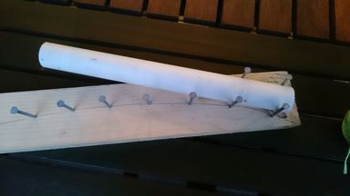 To keep the loop as circular as possible the PVC was curved using a quickly made jig made from nails and some wood. The PVC was heated with a heat gun and bent into shape.
