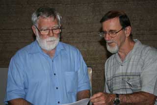 | Lyle (VK5ZNB) and Don, (VK5ADD) puzzling over the