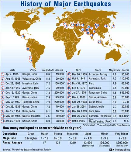 Seismic zonation map of a country is a guide to the seismic status of a region and its susceptibility to earthquakes. India has been divided into five zones with respect to severity of earthquakes. Of these, Zone V is seismically the most active where earthquakes of magnitude 8 or more could occur.