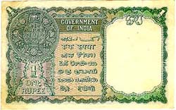 In August 1940, the one-rupee note was reintroduced, once again as a war