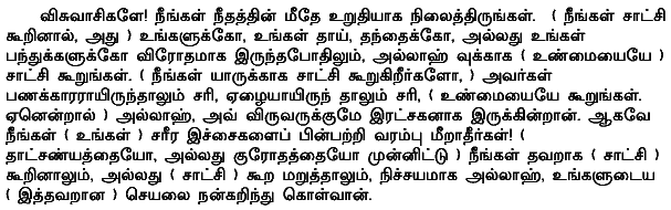 O ye who believe! stand out firmly for justice, as witnesses to Allah, even as against yourselves, or your parents, or your kin, and whether it be (against) rich or poor: for Allah can best protect both. Follow not the lusts (of your hearts), lest ye swerve, and if ye distort (justice) or decline to do justice, verily Allah is well-acquainted with all that ye do. Holy Quran - 4:135