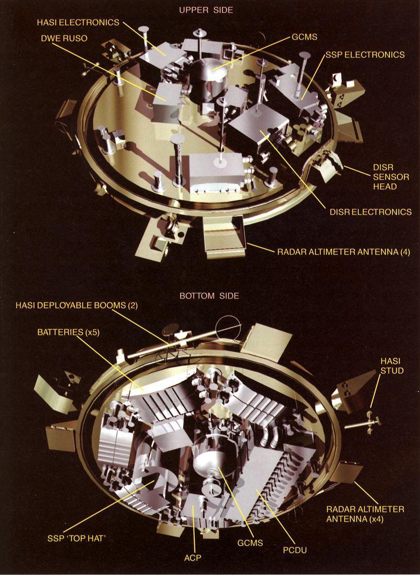 Mission actuellement en cours :  Après avoir survolé Jupiter le 31/12/2000, elle se mettra en orbite autour de Saturne le 27/11/2004 et l’arguera la capsule Huygens (un diamètre de 2,7 m et une masse de presque 350 kg) dans l'atmosphère de Titan le 14/01/2005. Les principaux objectifs de la mission Cassini-Huygens sont : (1) déterminer la structure tri-dimensionnelle et la dynamique des anneaux, (2) déterminer la composition de la surfaces des satellites et l'histoire géologique de chaque objet, (3) déterminer la nature et l'origine du matériau sombre sur l'hémisphère "avant" de Japet, (4) mesurer la structure tri-dimensionnelle et le comportement dynamique de la magnétosphère, (5) étudier la dynamique de l'atmosphère de Saturne au niveau des nuages, (6) étudier la variabilité dans le temps des nuages et brumes et Titan, et (7) caractériser la surface de Titan à une échelle régionale. L'instrumentation de Cassini consiste en un radar de cartographie, un système d'imagerie CCD, un spectromètre de cartographie visible infrarouge, un spectrographe d'imagerie ultraviolet, un instrument d'imagerie magnétosphérique, un magnétomètre et un spectromètre de masse ion/neutre. Une télémesure depuis l'antenne de communications sera également mise en œuvre pour effectuer des observations des atmosphères de Titan et de Saturne et mesurer le champ de gravité de la planète et de ses satellites. La mission orbitale est prévue pour une durée de quatre ans.