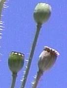 aplatie sur le dessus. Long pédoncule couvert de soies. Capsule verte contenant