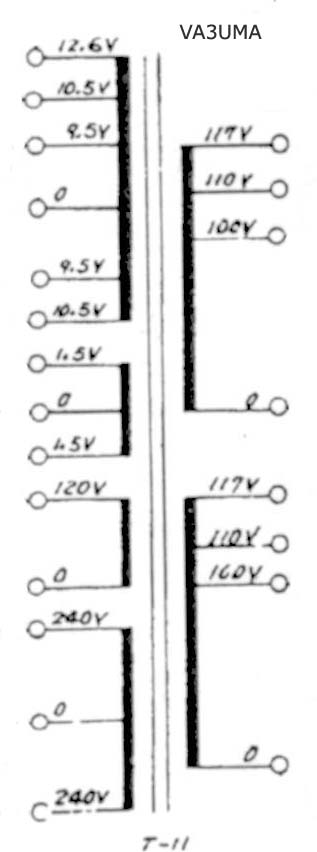 T-11 power transformer, apparently cannibalized from a Yaesu