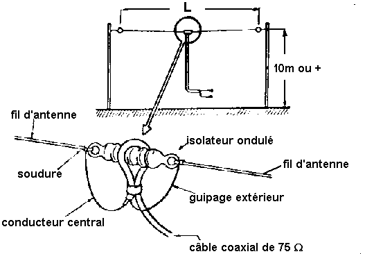 * Les raccords, surtout extérieurs s'il y en a, doivent être soigneusement soudés car l'oxydation apportera fatalement des contacts intermittents. * Les extrémités et points de soutien doivent être bien isolés (de préférence isolateurs du type oeuf, peu coûteux). * Les fils ne doivent pas être trop tendus (en se rapprochant de la ligne droite). Cela crée une force énorme à laquelle s'ajouteront celles du vent et du verglas.