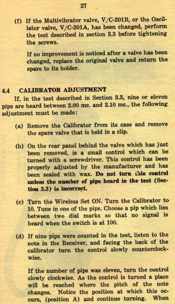 Part 19 -- Chapter IV, Replacement of Valves and Calibrator Adjustments