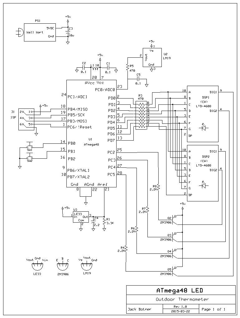 by the ATmega48 A/D and the temperature calculated. There is an array