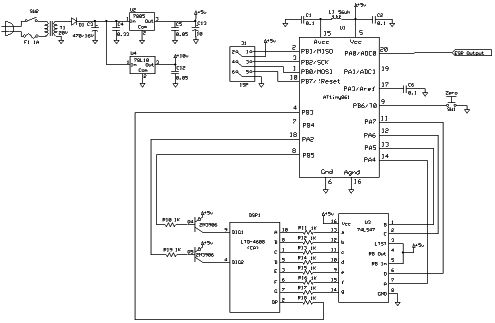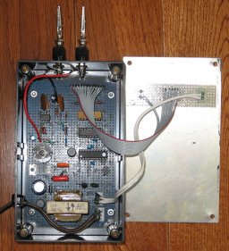 | "The only part that could pose problems to inexperienced builders is the transformer. I made mine using an Amidon ferrite core, type EA-77-188, which is a tiny double-E core having a cross section of 22mm2, and external dimensions of about 19x16x5mm total. I used the nylon bobbin that Amidon delivers with it, wound a primary winding consisting of 400 turns of AWG #36 wire, and as secondary I wound 20 turns of AWG #26 wire. If you have a larger or smaller core, you can adjust the turn numbers in inverse proportion to the cross section area. The wire size isn't critical - the gauges I used are about 3 or 4 numbers thicker than necessary, while at the same time this bobbin has room for wire at least two numbers thicker than the ones I used. Thus, you can choose from about 6 different wire gauges for each winding, with negligible impact on the performance." |