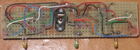 The photos show two monitors on one circuit board, one for each computer, sharing the line monitoring part of the circuit. The wall wart drives both optoisolators in series. The apparent 8-pin IC in the middle is actually 2 4-pin optoisolators plugged into one socket. The board slips into guide slots in the case. Three holes have been drilled to provide access to the sockets, plus three small holes in the cover for the LEDs. The only mistake I made was to use those sockets included with the UB232Rs; they pop out of the sockets too easily when you plug in a cable, so I had to secure them with some hot glue.