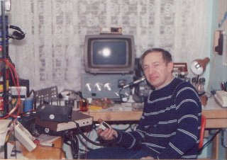 | Roman VE3PIJ przy próbach przemiennika w swoim "shack'u". | Grzesiek VE3NXO. Ależ on tu młodziutki! To był rok 1992 lub 1993. |