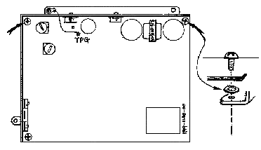 When replacing the board to the chassis, add a solder lug E23-0420-05 to the heat sink mounting screw as shown, and tighten all screws for this board. Solder an insulated lead between the TPG (Test Point Ground) wrap post adjacent to C81, and the added solder lug.