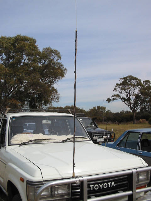 Peter VK3TQ | Peter VK3TQ's Vehicle showing club whip | Roy's VK3IEA's Mobile Whip | VK3TAS's little motorbike Whip |