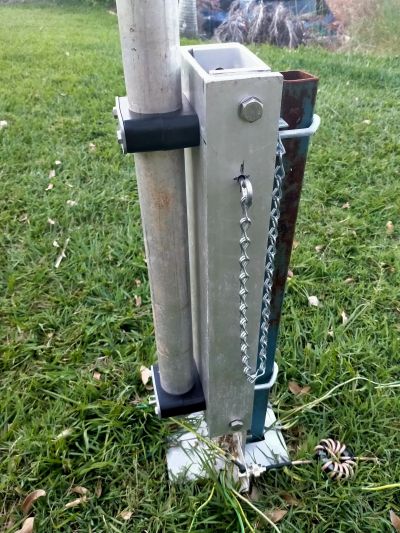 I used a 2.0m (78 inch) length of 4mm thick wall 50 (2 inch) SHS steel for my support post. It is 600mm (24 inches) above ground and about 1800mm (70 inches) in the ground. I did not use cement as I didn't think it necessary.