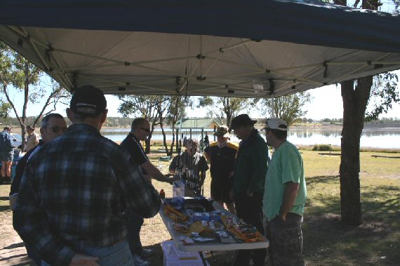 Kevin kindly brought his trailer fitted with his OMT to Lake Dyer. . The event was well attended with around fiftypeople attending, from as far away as Redcliffe, Esk and locals. . VK4ICE also provided an antenna display. The pictures below were kindly provided by Peter, VK4KHP. |