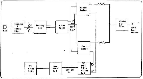 As a matter of interest I did carry out some limited tests to see how high a frequency the system could be made to work. (Of course not including the output filters just discussed). I found I could generate single sideband at frequencies as high as 3.5 MHz, limited probably by the characteristics of the XR2228 packages. I suspect the modulators could be made to go higher using packages such as the NE602. Further to that, higher frequencies could be achieved by heterodyning.