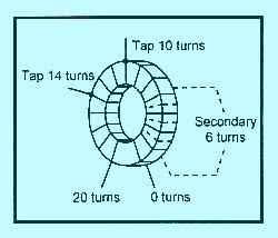 I arranged for the toroidal coil to have a similar primary inductance to the AR open coil unit and set the coil taps to provide the same ratio of turns. The secondary was also proportioned on the same basis. To achieve the same inductance (a little over 5 uH), 20 turns were placed on the primary and taps were connected at 14 and 10 turns. The secondary of six turns was interwound with the first six turns of the primary, commencing from the cold end.
