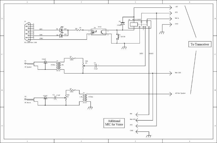 第二個線路是一個改善版本。它用變壓器及光控交連器隔離收發機與電腦的線路,並加了一個Mic。