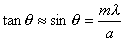 而這裡 a 就是兩道隙縫之間的距離,θ則是兩個波在屏幕上某點形成干擾的位置與隙縫成一直線而與中線的夾角。