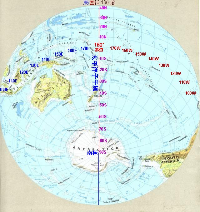 一直至南極亦都共有九十度。