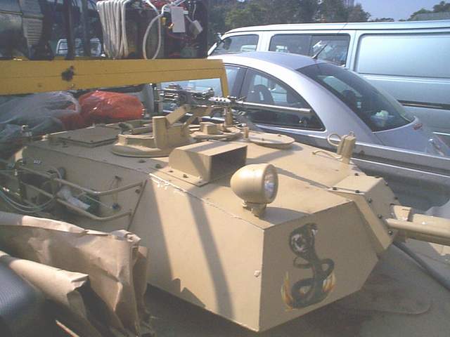 更正及道歉啟示 : 由於收錯料關係, 先前刊登之坦克重量及製作年期實為誤載. 現蒙鄺先生來電指正, 不勝感謝與及榮幸. 正確資料為坦克總重量為 220 Kg(484磅), 製作時間由構思開始至製作完成一共用了五年時間, 特此更正 ! 不便之處, 敬請原諒.