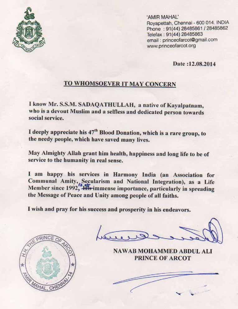 Prince of Arcot Nawab Mohammed Abdul Ali - Former Sheriff of Chennai