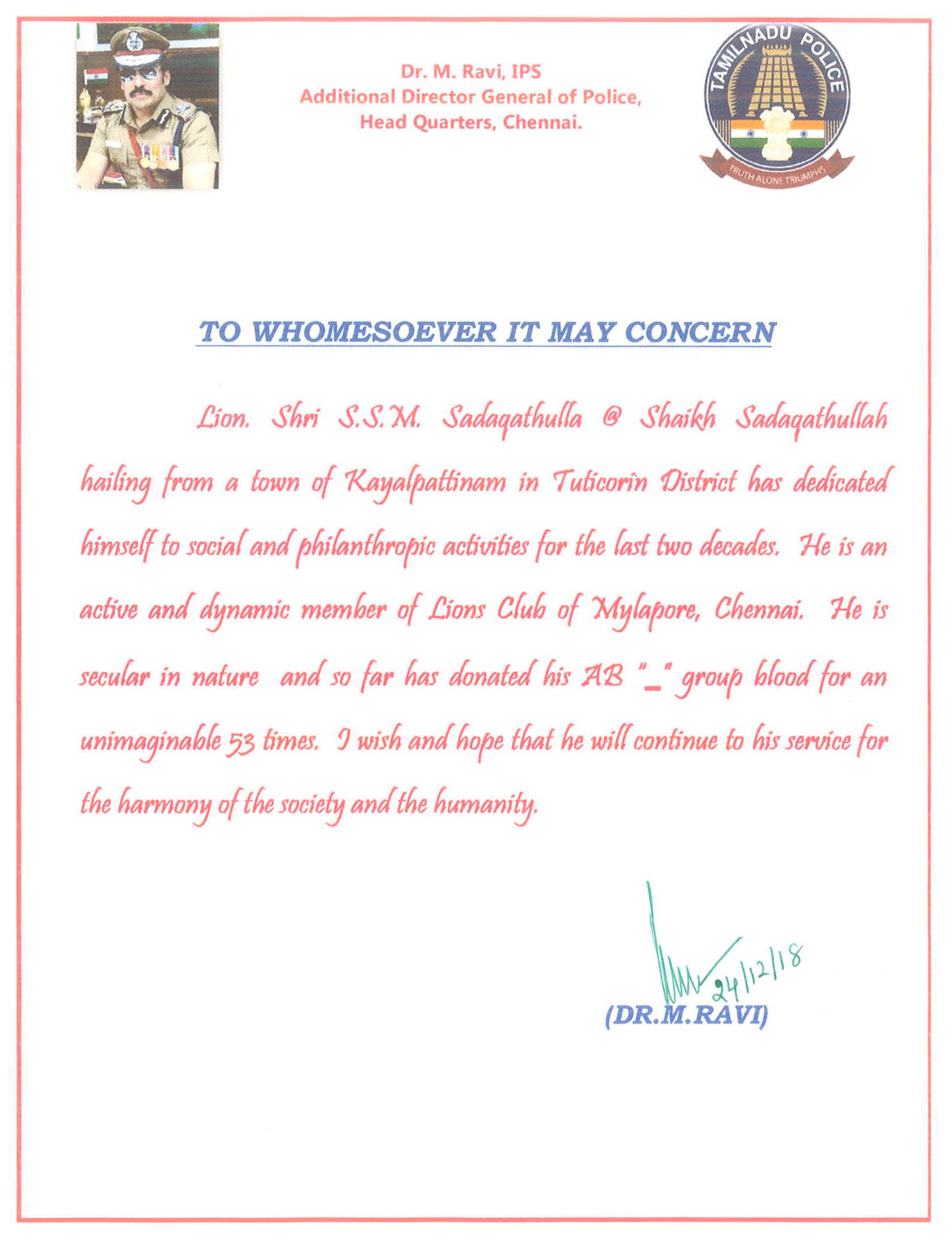 Dr. M. Ravi, IPS - Additional Director General of Police - Govt of Tamil Nadu