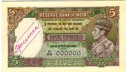 Rupees Five - First Note issued by Reserve Bank of India