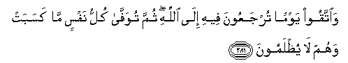 Fear the Day in which you shall be taken back to Allah. Then, every one shall be repaid in full what one earned. And they shall not be wronged. [Holy Quran 2.281]