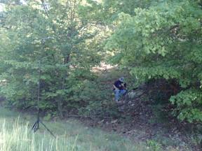 This summit is east of Sycamore Lookout along the scenic byway. It is near Co Road 221, but would be difficult to find without a gps. We parked the car on the side of the road and scouted toward the summit. Jonathan decided that it was too steep to carry the gear up the hill, so he set up just inside the trees next to the road. Being the masochist that I am, I carried my gear up the hill about 50 yards and set up.