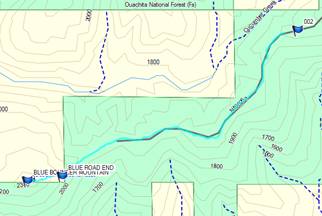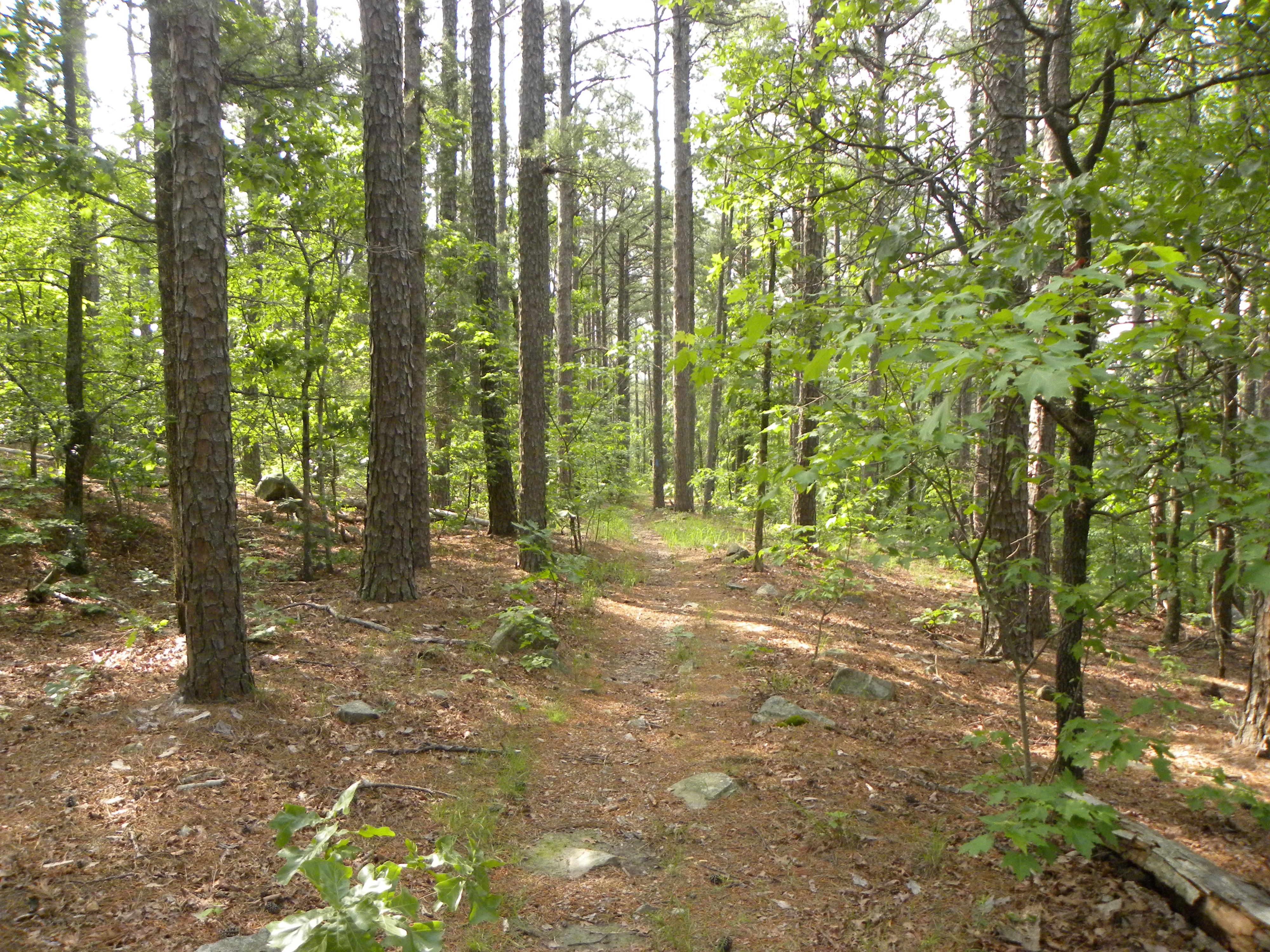 I had to abandon this mountain the last time around because of the bad road that comes in from the east around the north side of the mountain. I hiked the Ouachita trail for 3 miles from Rough Mountain to where the trail crosses NF 6023. From there, I followed the ridge line all the way up to the summit. There are some patches that are overgrown, but the entire hike up the ridge is not very difficult. Stay to the west side of the ridge to avoid most of the dense undergrowth. There are lots of trees at the top to hang the dipole from.