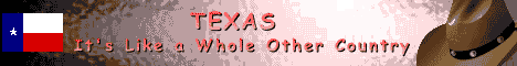 Please feel free to choose from any of the following banners to use as a link on your site to "TEXAS-IT'S LIKE A WHOLE OTHER COUNTRY!". Save the banner of your choice by right clicking on the banner with your mouse and then using the "save image as" option. Please link the image to http://www.w5www.com/texas.htm . Many thanks for the link! Ron