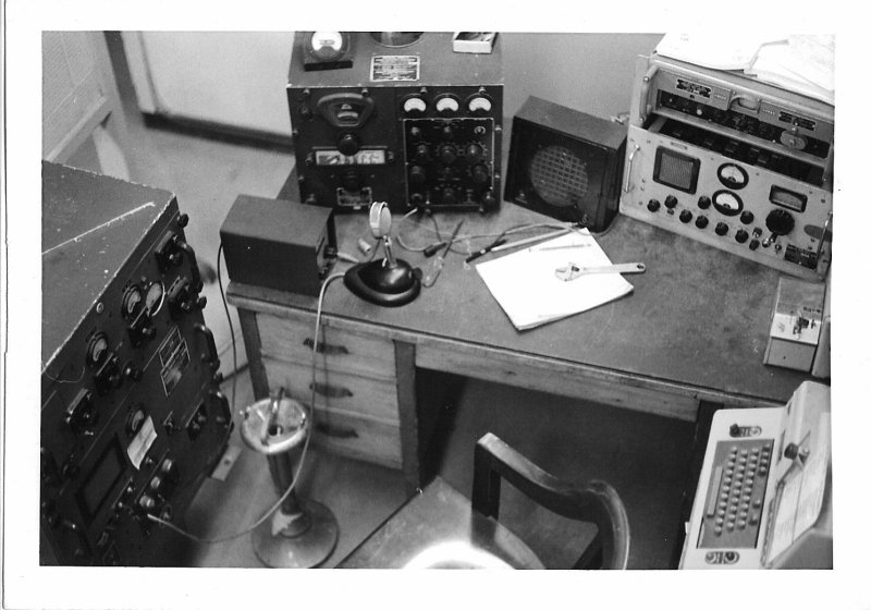 The VHF position. Six and two meter ground planes and beams were available. We had an Ameco TX62 and an RBC-5 for six meters and a Navy TDQ and an RBC-1 for two meters. I didn't use the VHF station, I just got the equipment list from the RTTY brag tape :-)