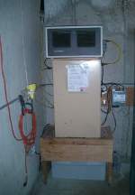 us stability and security. The repeater is on top, the filter box below and the battery bank on the floor underneath, with the charger on the wall to the right. |