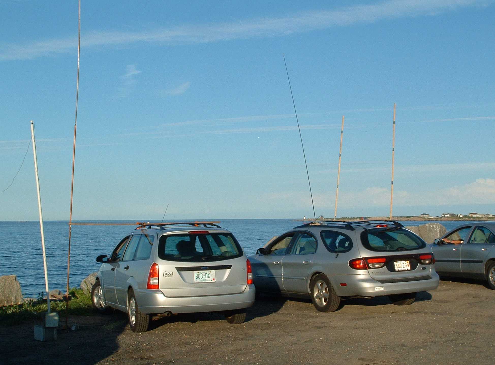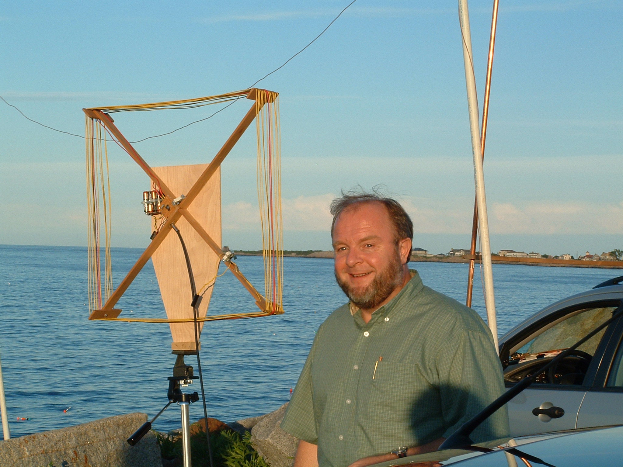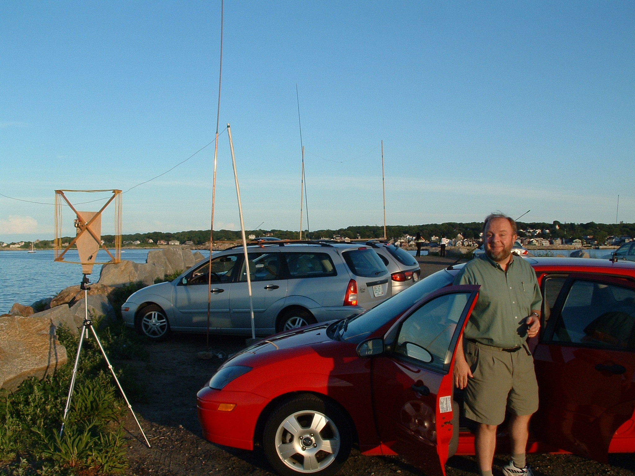 When dinner was done, it was off to Granite Pier in Rockport, MA to set up antennas and receivers to catch longwave, medium wave, and shortwave DX starting around 8 p.m. EDT (0000 UTC) just before local sunset. Gary Thorburn, who couldn't make it to the dinner, showed up at the pier with his homemade loop antenna.