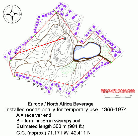 Map: WA1ION Beverage Antenna Site - Arlington, MA (1966-1974)
