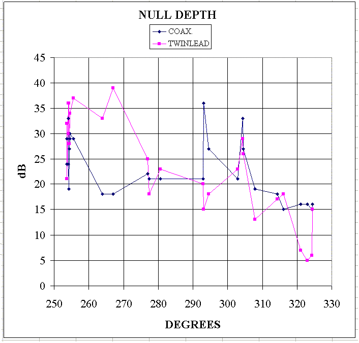 Test data tables below are for a coaxially-fed unamplified pennant antenna (Table 1) and for a twinlead-fed pennant system with a BBVA-A amplifier providing about 30 dB of gain (Table 2).